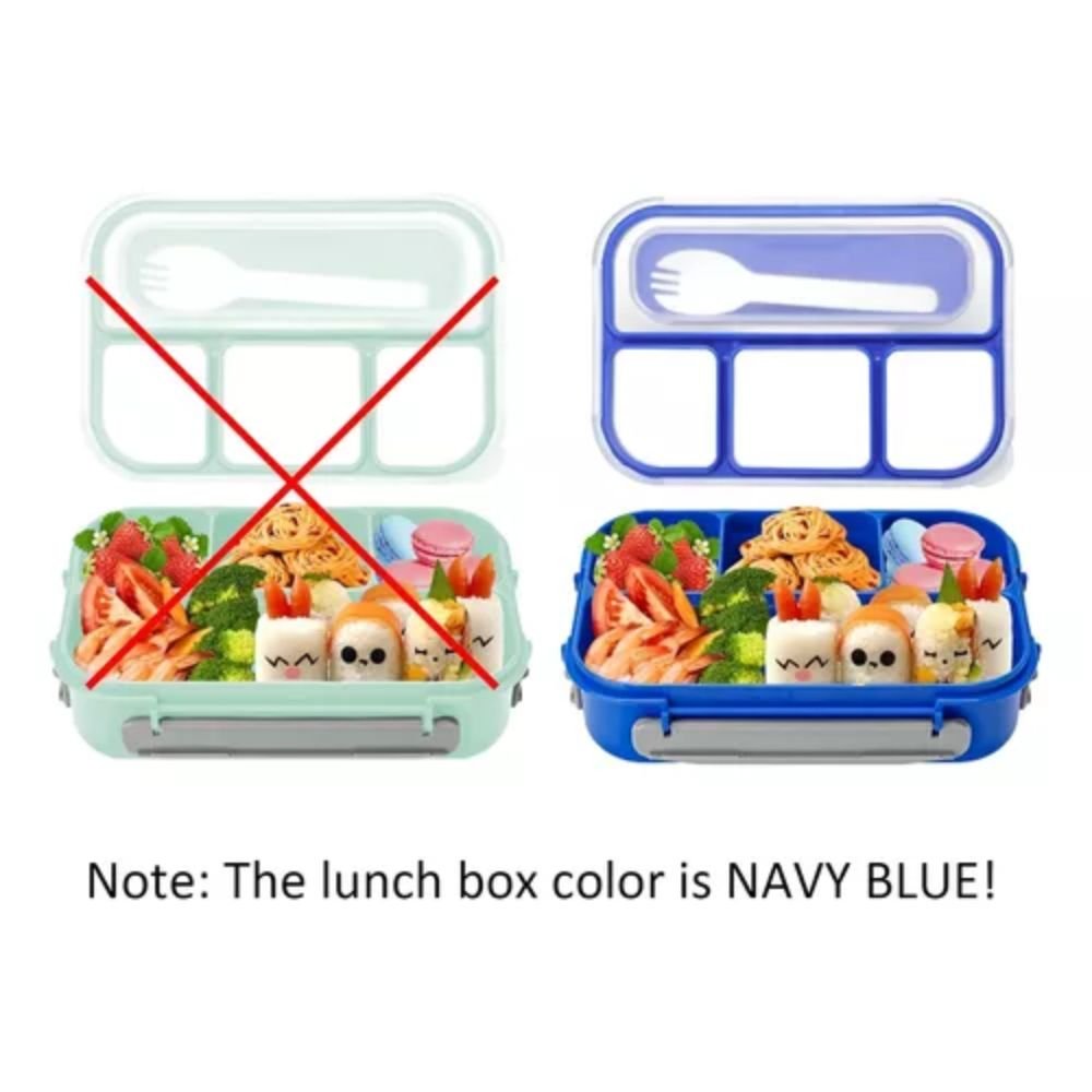Caja Bento japonesa de 4 compartimentos: esta caja bento tiene 4 compartimentos separados con tenedor y cuchara 2 en 1; fácil de preparar tus alimentos saludables en 4 recipientes divididos; el tenedor y la cuchara se pueden fijar en la tapa. Lo suficientemente profundo como para romper más alimentos. Caja bento perfecta para niños (8 años +) y adultos (Nota: el color de la caja Bento es azul marino, ya que el verde está agotado)