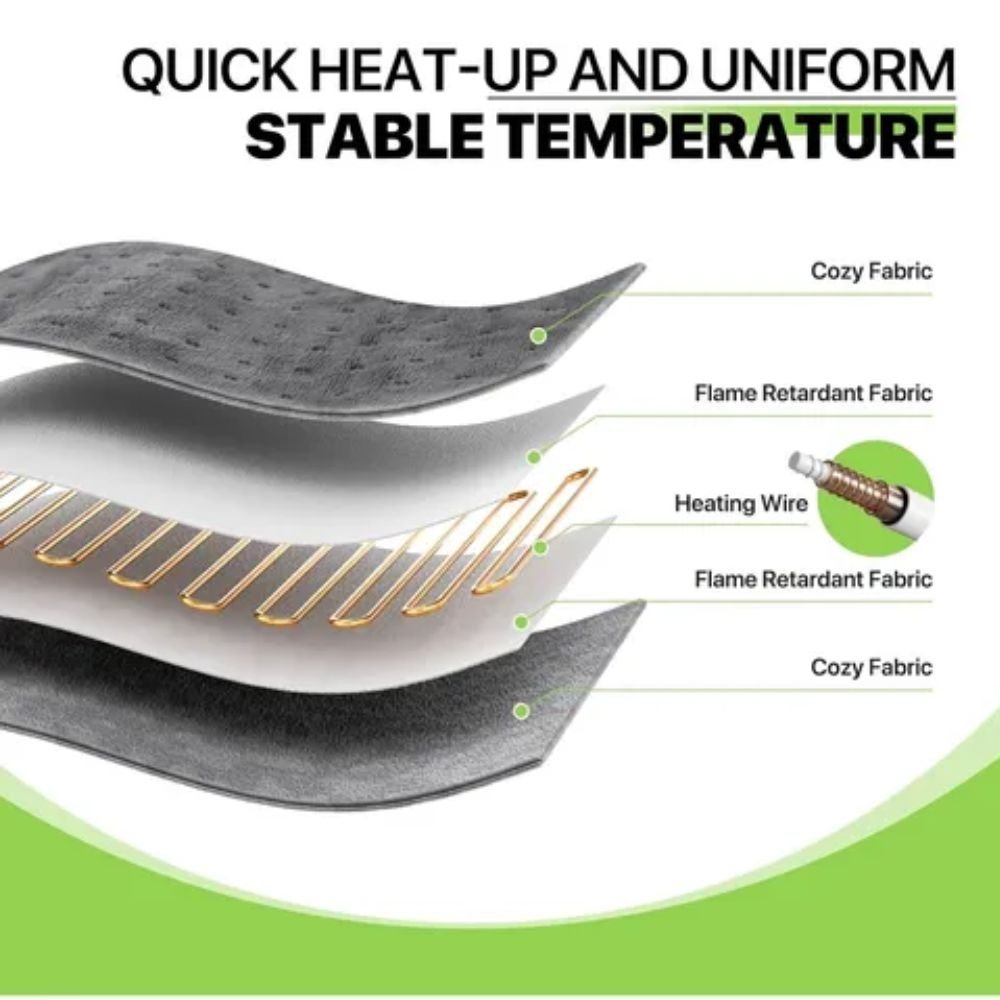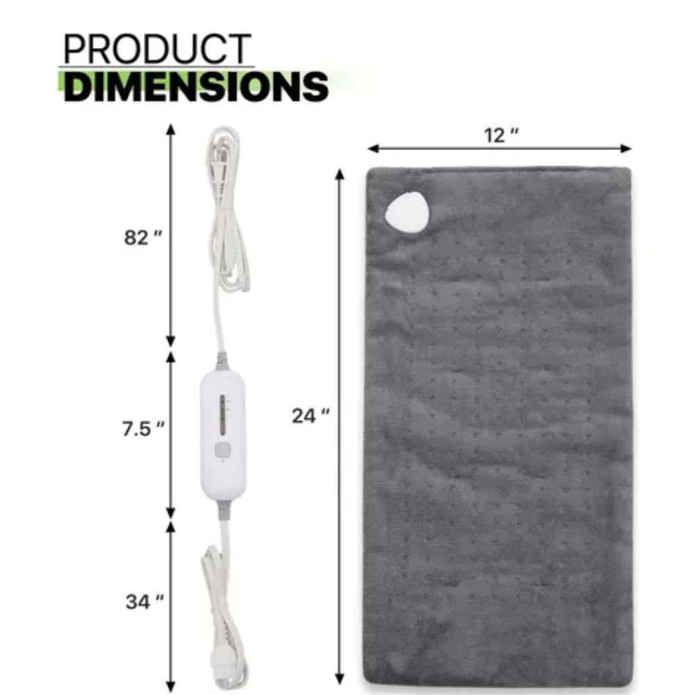Con tres niveles de calor ajustables, puedes personalizar la intensidad para adaptarla a tus necesidades, ya sea para calmar molestias en la espalda, cuello, hombros o piernas. Su tamaño generoso de 12 x 24 pulgadas permite cubrir áreas amplias, proporcionando un alivio efectivo y confort prolongado.