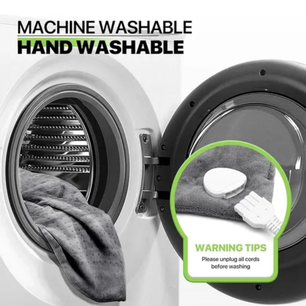 Pensando en tu seguridad, la almohadilla está equipada con un sistema de apagado automático después de 90 minutos, lo que te brinda tranquilidad durante su uso, evitando sobrecalentamientos y ahorro de energía. Además, su diseño es completamente lavable, facilitando su limpieza y garantizando un producto siempre fresco y listo para usar.