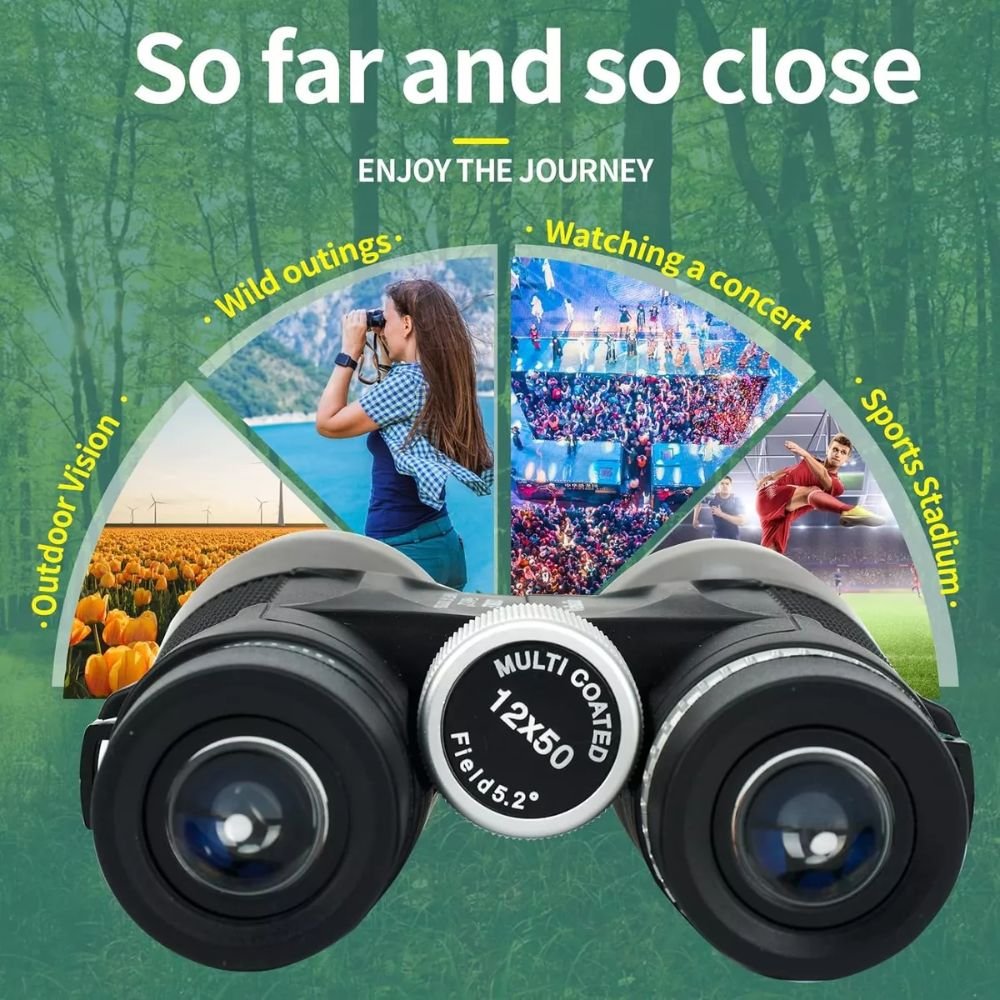 Experimenta la máxima claridad y detalle en tus aventuras con estos prismáticos 12×50 de alta calidad, diseñados para ofrecer un rendimiento superior en cualquier situación. Con un aumento potente de 12x y lentes de objetivo de 1.969 pulgadas, proporcionan un campo de visión amplio de 240 pies a 1000 yardas, para que no te pierdas ni un solo detalle, desde paisajes hasta vida silvestre.