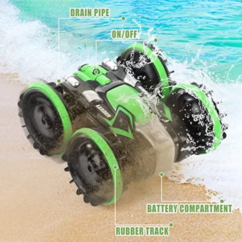 Diseño impermeable: Equipado con un anillo de goma impermeable para proteger el interior del coche, lo que permite conducirlo incluso en el agua. Diversión increíble con estos divertidos juguetes RC terrestres y acuáticos.