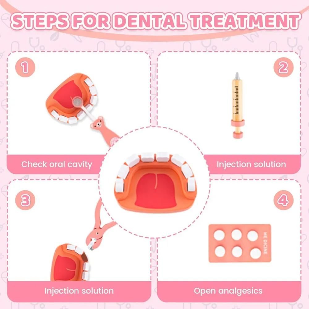 Kit de dentista divertido y educativo: fomenta la imaginación, las habilidades motoras finas e incluso ayuda a reducir la ansiedad por las visitas reales al dentista. El pequeño kit de dentista viene con dientes, herramientas y accesorios que permiten a los niños fingir ser verdaderos dentistas. Es perfecto para despertar la imaginación, enseñar sobre el cuidado dental y mantener a los más pequeños ocupados con el juego creativo. Las piezas son resistentes, seguras y fáciles de sostener para manos pequeñas.
