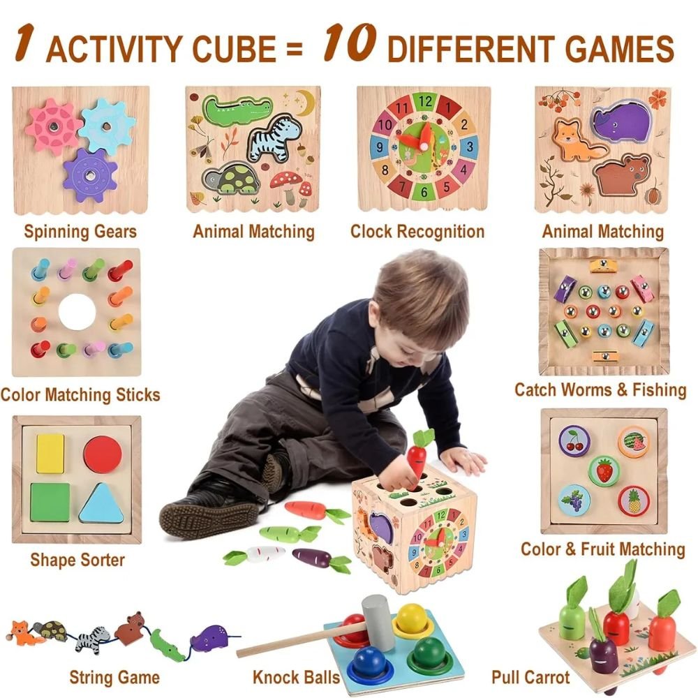🧩 Cubo de Actividades 11 en 1 – Diversión y aprendizaje Montessori 🌟