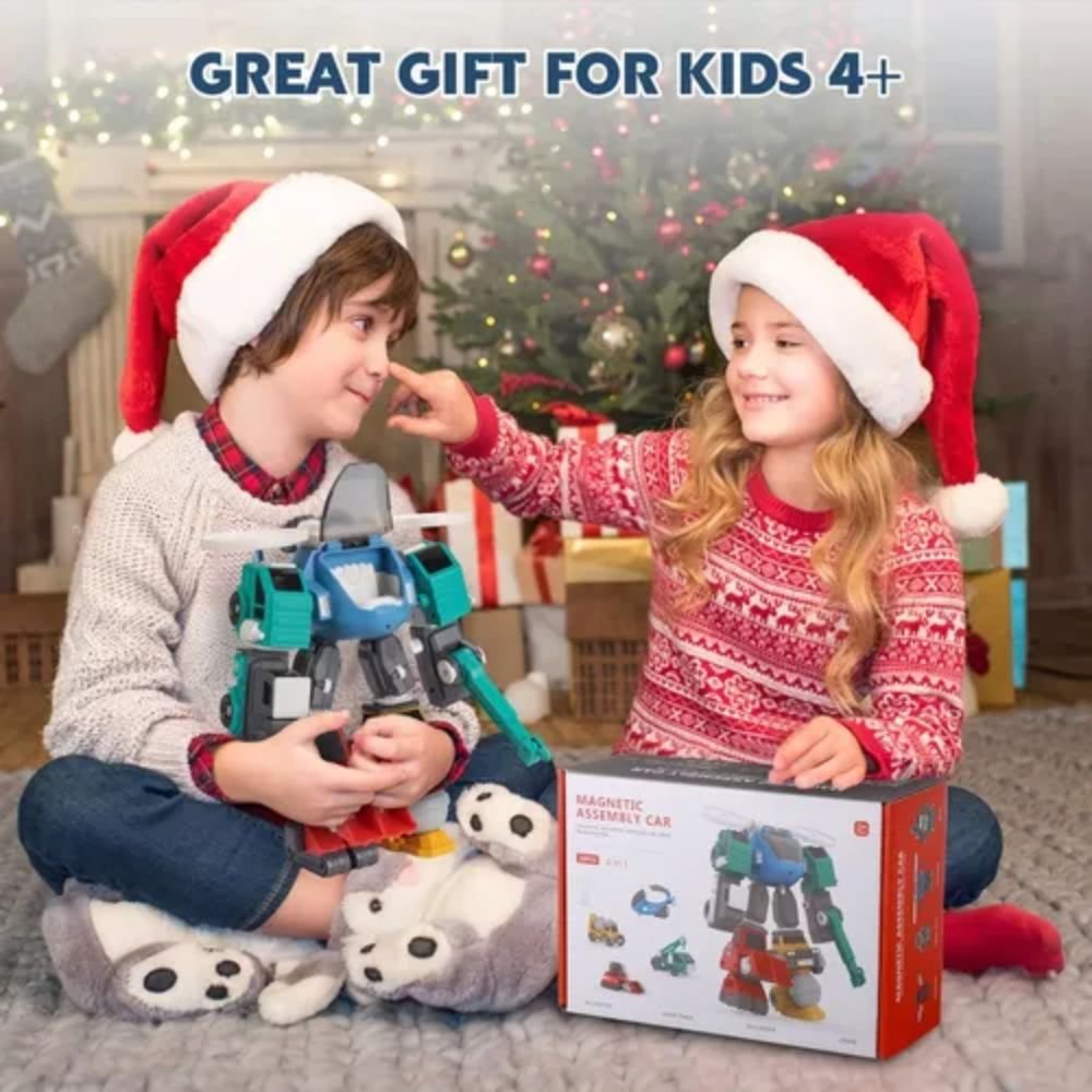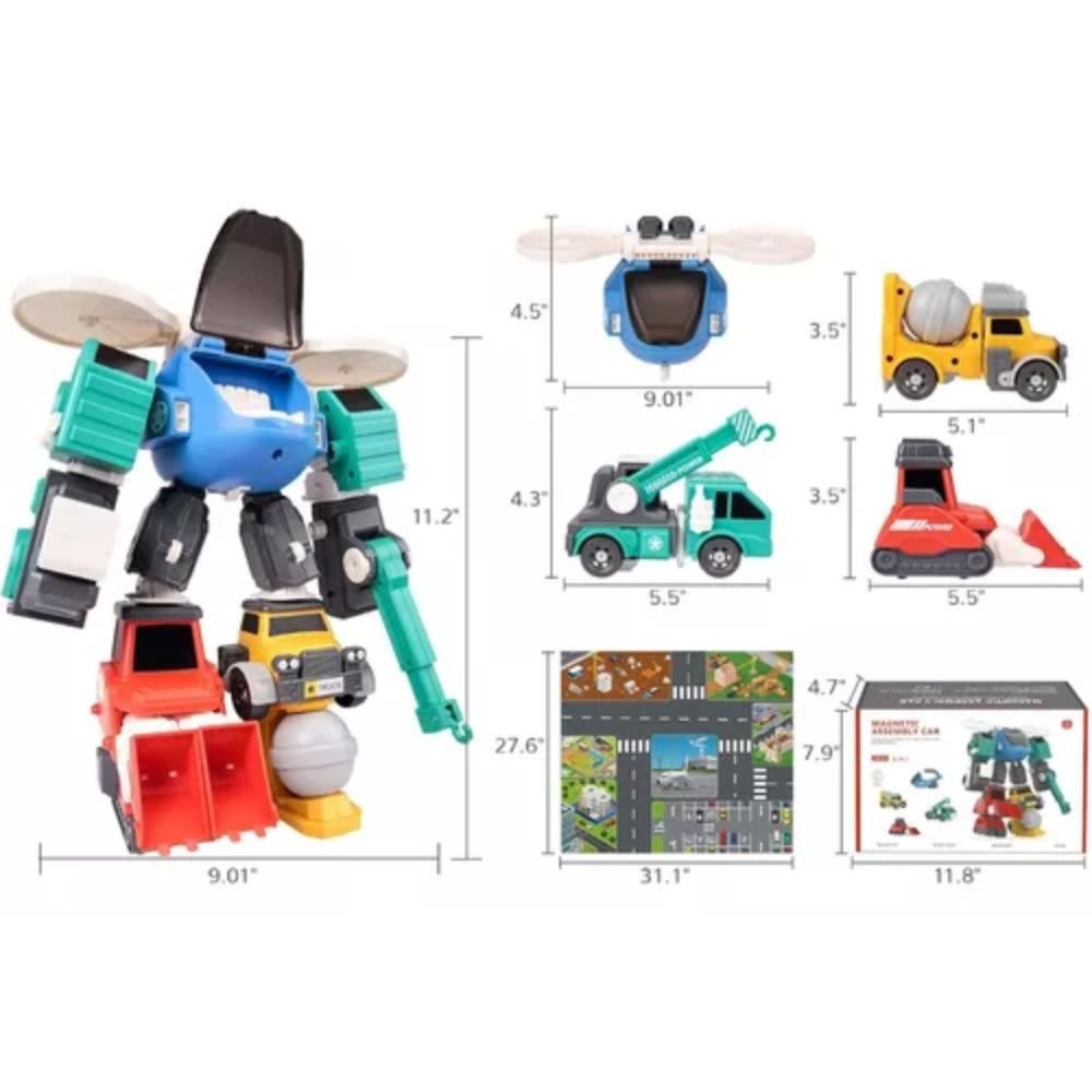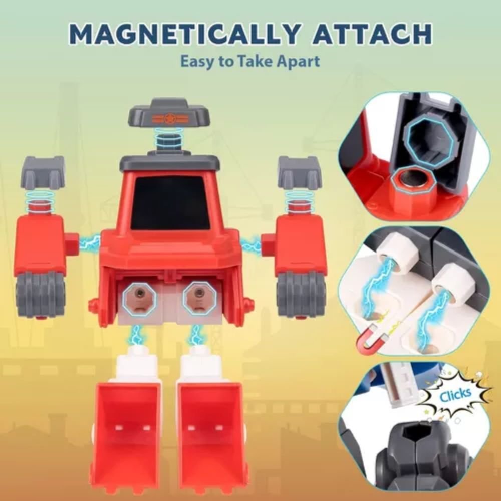 Juguetes magnéticos de construcción de troncos: ¡qué gran robot de juguete para niños de 5 a 7 años! Cada vehículo tiene su propio conjunto de piezas desmontables en colores brillantes de rojo, amarillo, azul y verde. Los interesantes juguetes de construcción fomentan la imaginación, la creatividad y la combinación de colores de los niños.