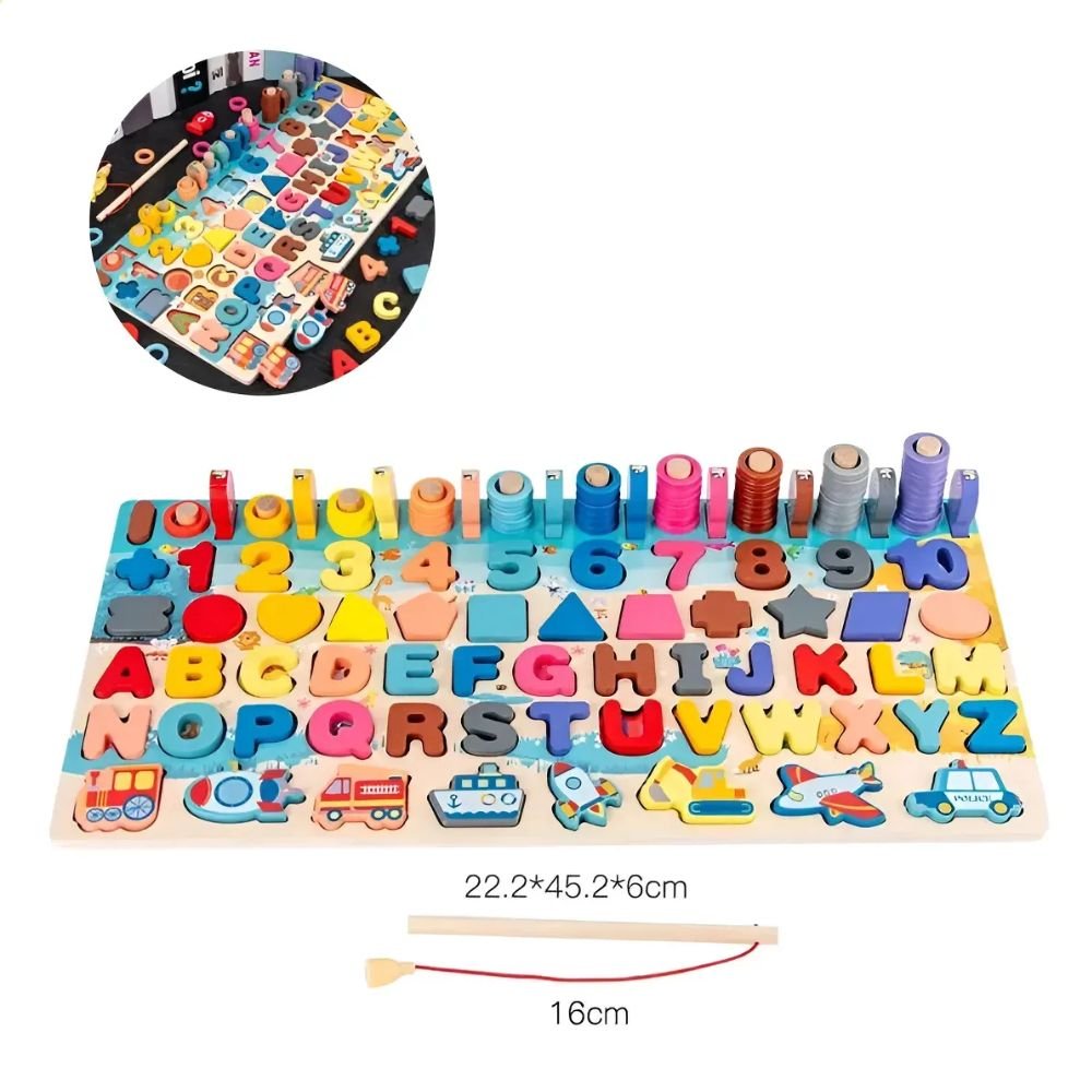 ¡Diversión y aprendizaje en un solo juguete! 🌈 Incluye rompecabezas de letras y números, figuras de animales, xilófono y juego de pesca magnética 🎣. Ideal para estimular motricidad fina, coordinación mano-ojo, reconocimiento de colores y formas ✨. Inspirado en Montessori, fomenta la creatividad, concentración y aprendizaje autónomo de los más pequeños 🧒👧.